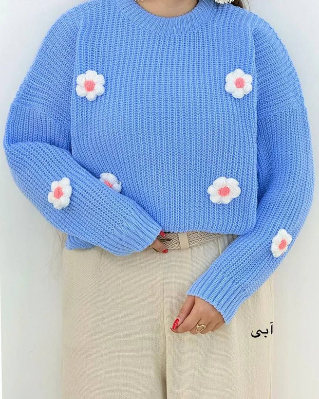 بافت طرح بابونه ی کاربسیار لطیف و نرم بدون اب رفت در شستشو دارای نخ تضمینی بافت بابونه برای مهمونی و دورهمی برای زیر کاپشن و پافر بدون اینکه حساسیت برای بدن داشته باشه،این بافت رو میتوان با شلوار لی ،دامن و حتی با شلوار پارچه ایی ست کنید بافت این کار از نخ با کیفیت درست شده